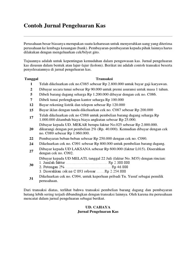 Contoh soal jurnal pengeluaran kas.